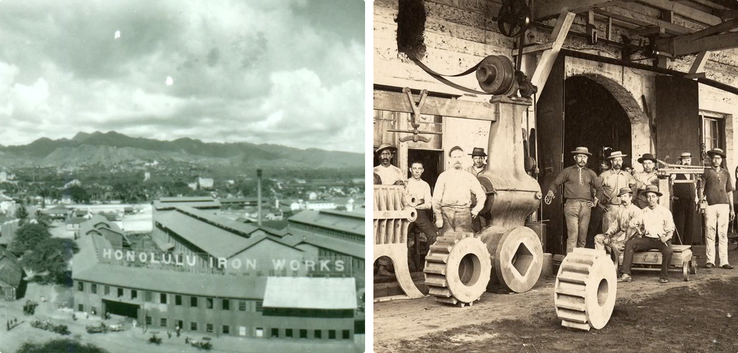 The district’s trading activity naturally led to more industrial development, including the metal trade. With the rise of metal manufacturing, houses and buildings with corrugated iron roofs began to replace the hale pili (houses made of pili grass). The Hawaiian word “meki” was derived from the pronunciation of “metal.”