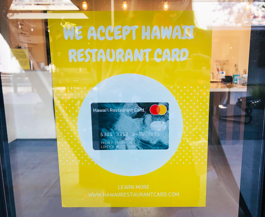 You can use your Hawai‘i Restaurant Card at participating restaurants in the State of Hawai‘i that accept MasterCard debit cards. Cards will be pre-loaded with $500 and can be used in your restaurant for food or drinks. Participating restaurants will be displaying “We Accept Hawaii Restaurant Card” signs so you know where you can use your card.
