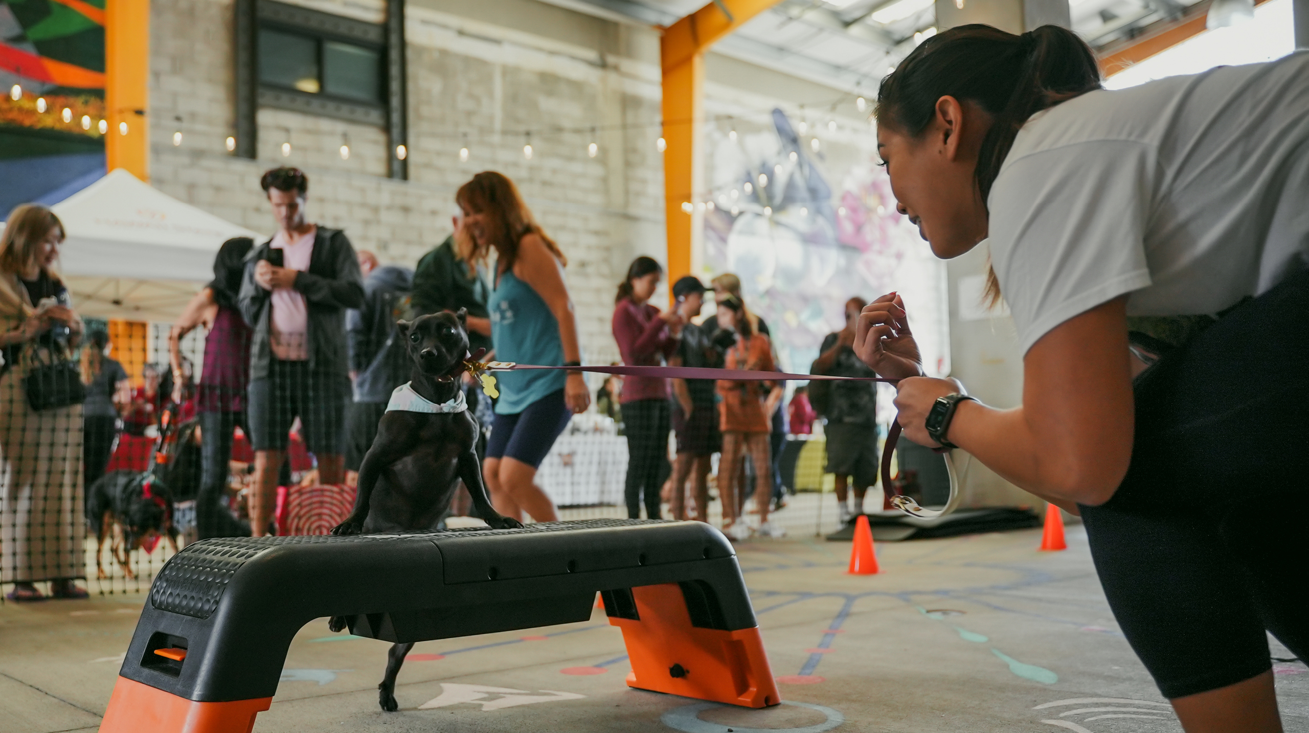Orangetheory® Fitness hosted its paw-pular pet workouts on concrete this time, which didn’t slow down the participating dogs and their humans at all! Pups zoomed through the agility course, then took a break as their owners lifted them up during squats and sit-ups — folks with bigger dogs were definitely feeling the burn. Shout out to the first cat and human pair to participate in the history of these workout classes!