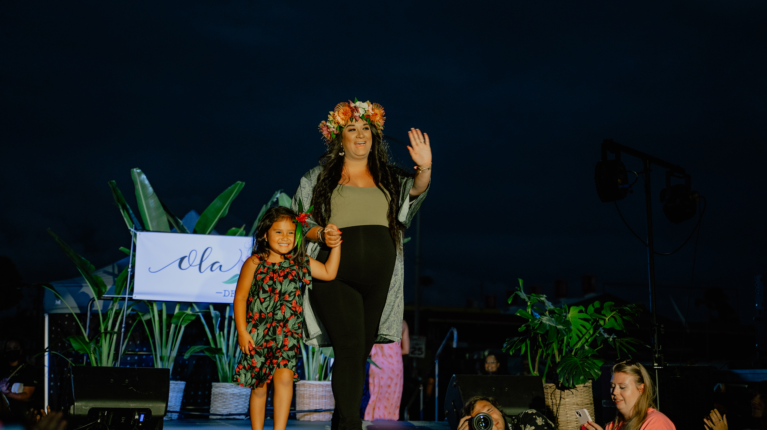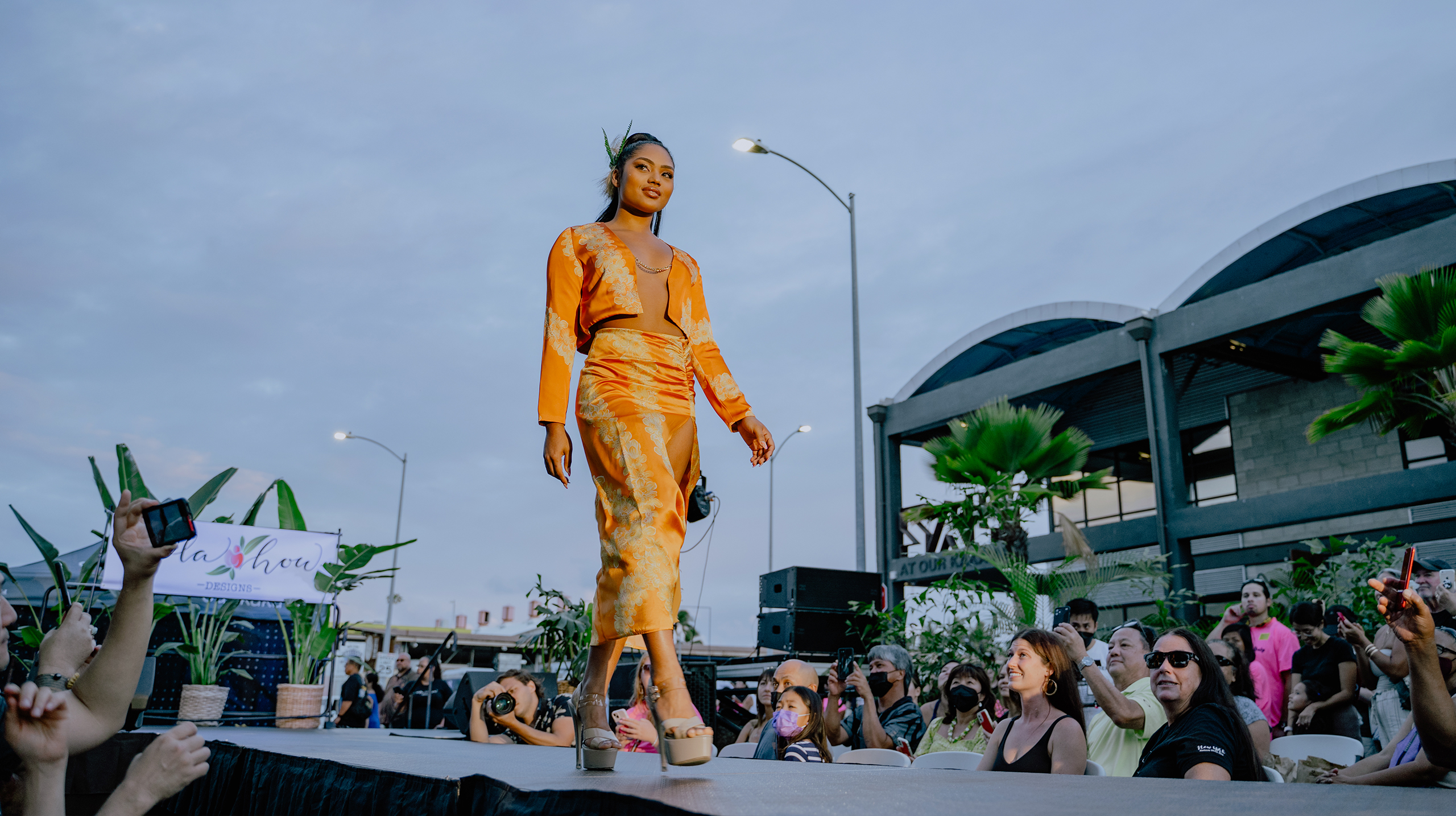 And as the sun set, the night came alive. Over 20 models took the stage on Auahi St. to strut their stuff and dazzle the crowd with Ola Hou Designs styles that graced New York Fashion Week and the debut of new aloha wear.