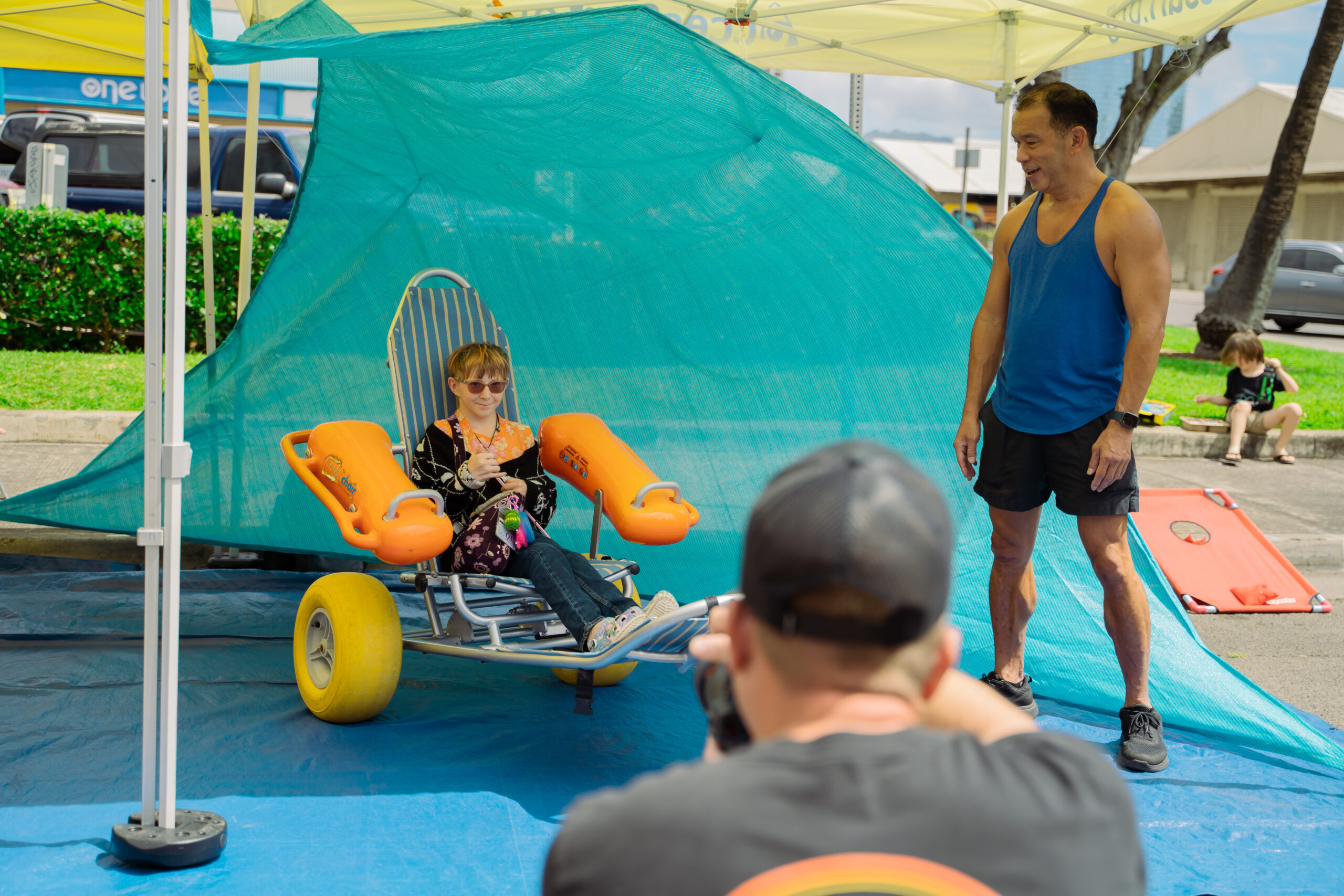 To bring to life an urban oasis for outdoor learning through play, we incorporated culturally rooted activities to engage attendees and foster a greater awareness and appreciation for Hawaiian culture. Our vendors offered culturally infused products, including Laulima Conservation apparel and home goods that feature native species and support local conservation, the Keiki Kaukau toy food sets spotlighting the melting pot of cuisines here in Hawai‘i, and the original comics by MANA COMICS, which feature stories starring superheroes represented by Native Hawaiian and other local cultures here on the islands. Plus, our friends at AccesSurf were back with us setting up a cool wave simulation and raising awareness of their mission to make the ocean accessible for everyone, no matter their disabilities.
