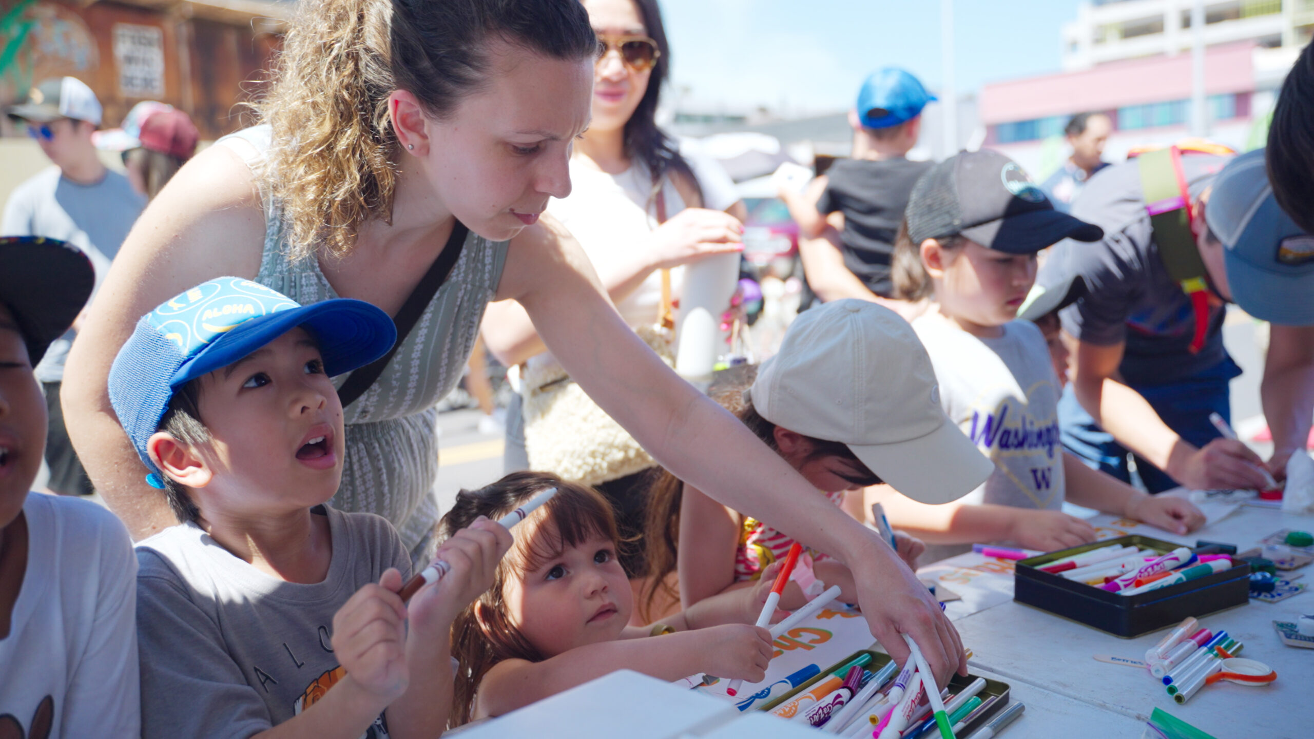 A lei of gratitude, a kalo leaf scavenger hunt, and an opportunity to grow naupaka were among the many cultural and educational activities offered in Our Kakaʻako for the Keiki Street Festival presented by American Savings Bank!