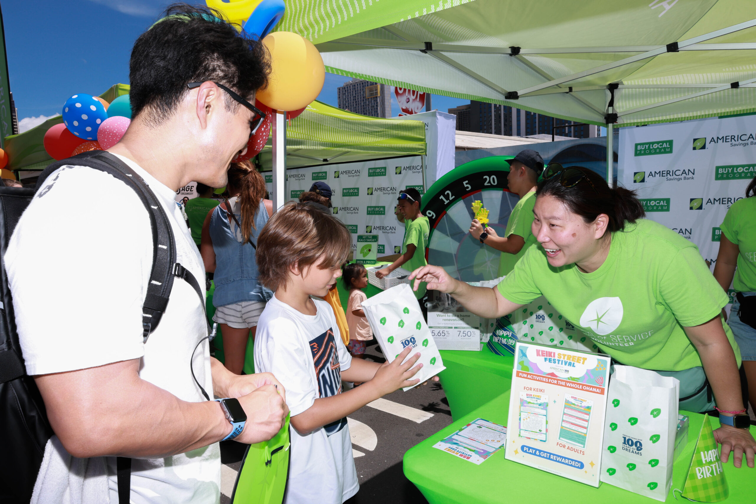 On Coral Street, presenting sponsor American Savings Bank threw a birthday party to celebrate their 100 years of serving Hawaiʻi. A magician dazzled keiki with tricks, and bank team members handed out balloons, cupcakes, and party swag to continue the celebration! There was even a word scramble and scavenger hunt for keiki to test out their financial smarts.