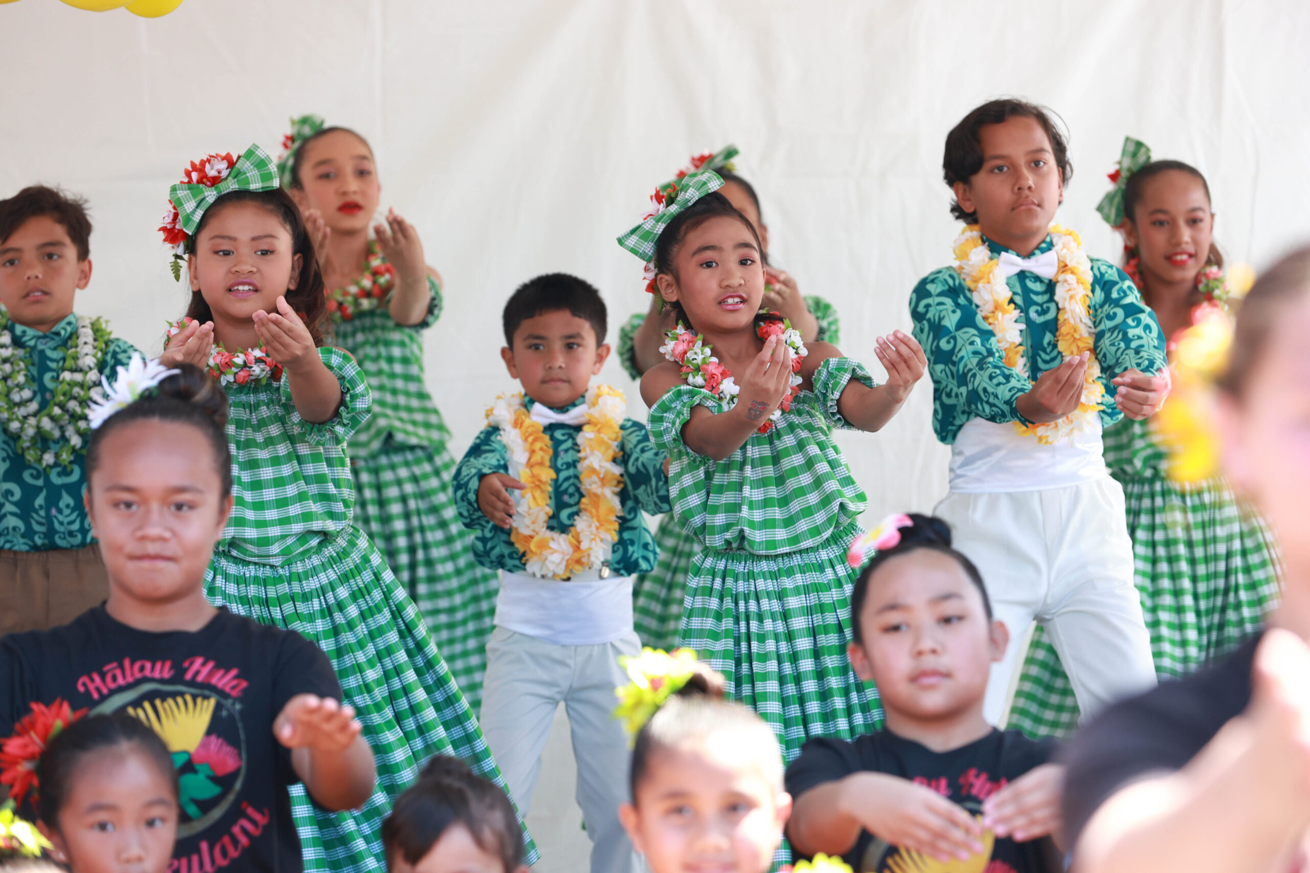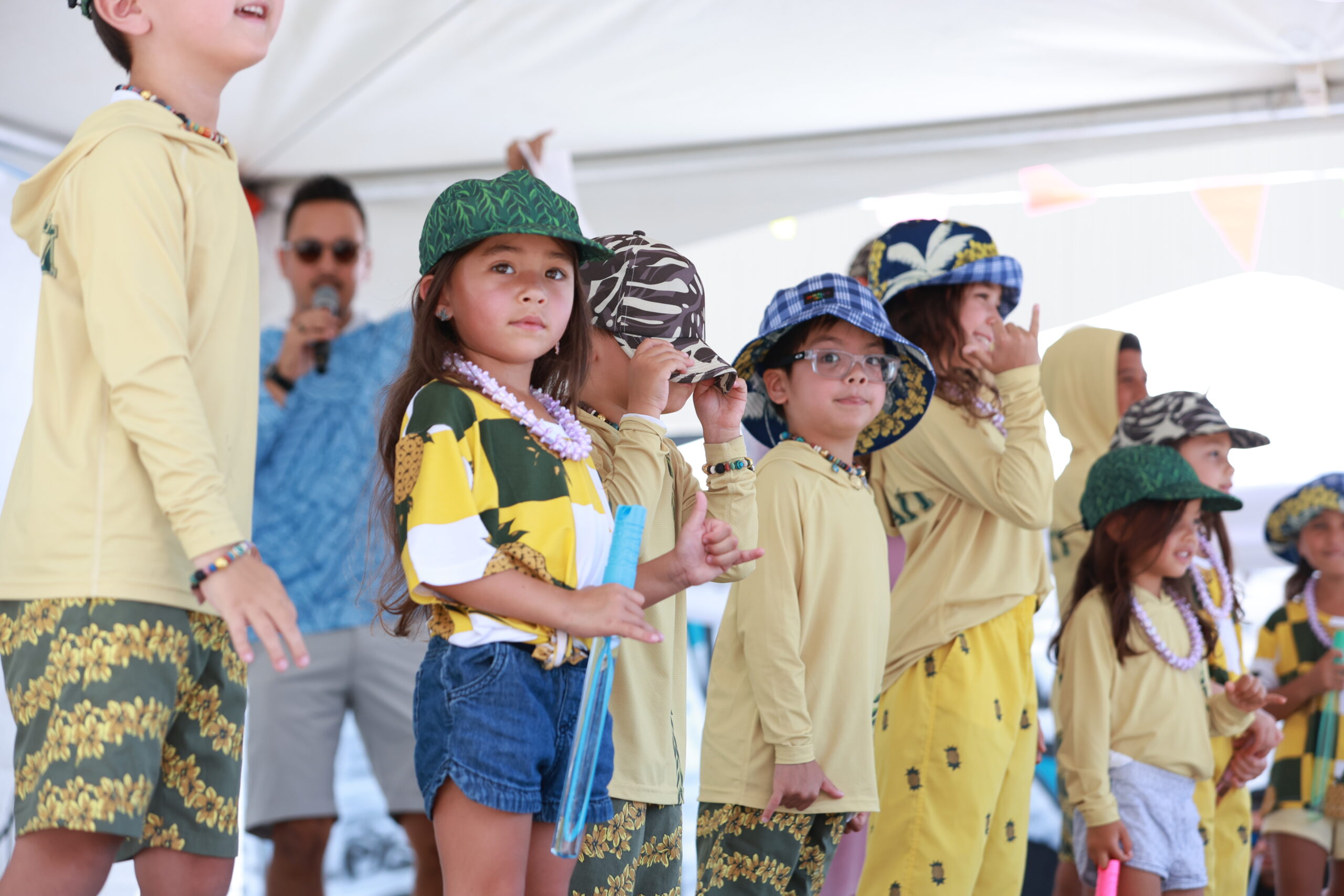 Kamehameha Schools Kapālama haumana and emcee extraordinaire Kamahaʻo Haumea-Thronas kicked off the event! He quizzed keiki on their hua ʻōlelo Hawaiʻi (Hawaiian language vocabulary) and introduced performances by Hālau Hula ‘O Hokulani and Kamehameha Schools, as well as a fashion show from Alikaleo. The entertainment continued throughout the day with dance performances, DJ sets, and live music!
