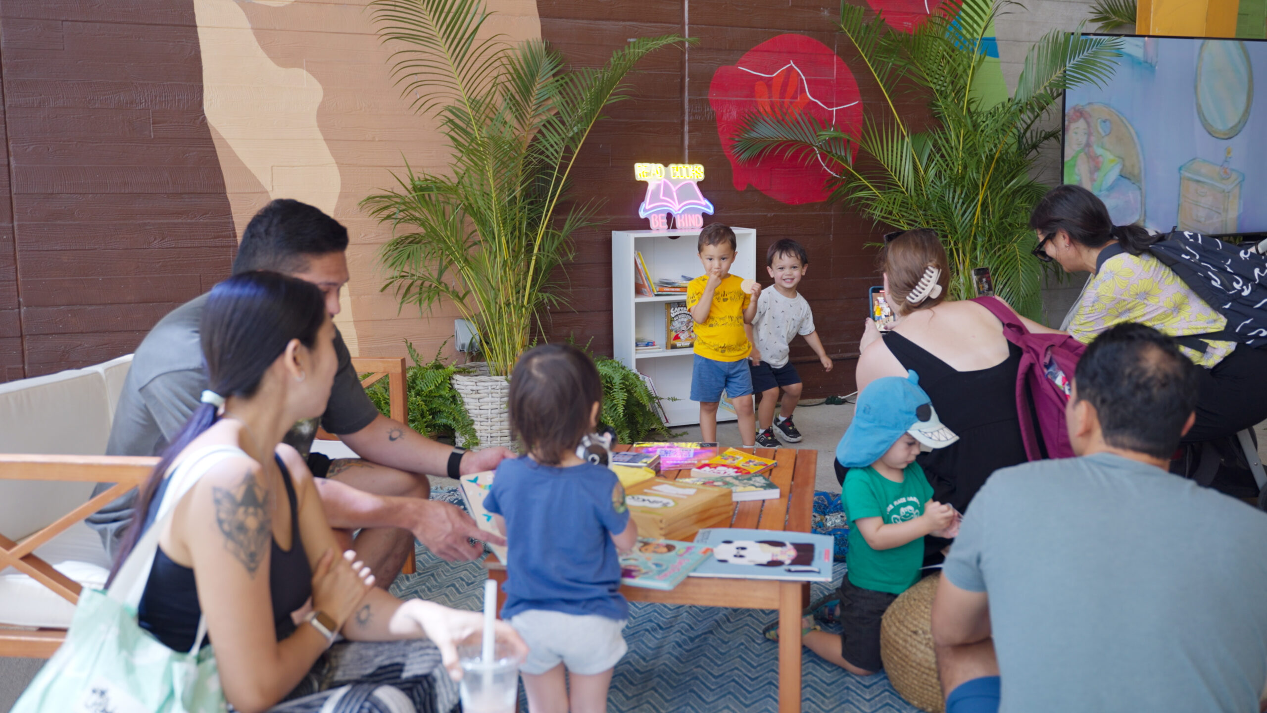 In the Barn at SALT at Our Kakaʻako, ʻohana gathered to relax, read and cultivate their knowledge in the shade. Keiki got to try out digital ahupuaʻa learning apps, augmented reality coloring sheets, and make name tags with Kamehameha Schools; received native plant education and planted naupaka with Bishop Museum; and created native bird art and bird feeders with Da Dream Lab. Orangetheory Fitness held a keiki boot camp at Kalokoʻeli Courtyard, giving ʻohana a chance to be active, too!