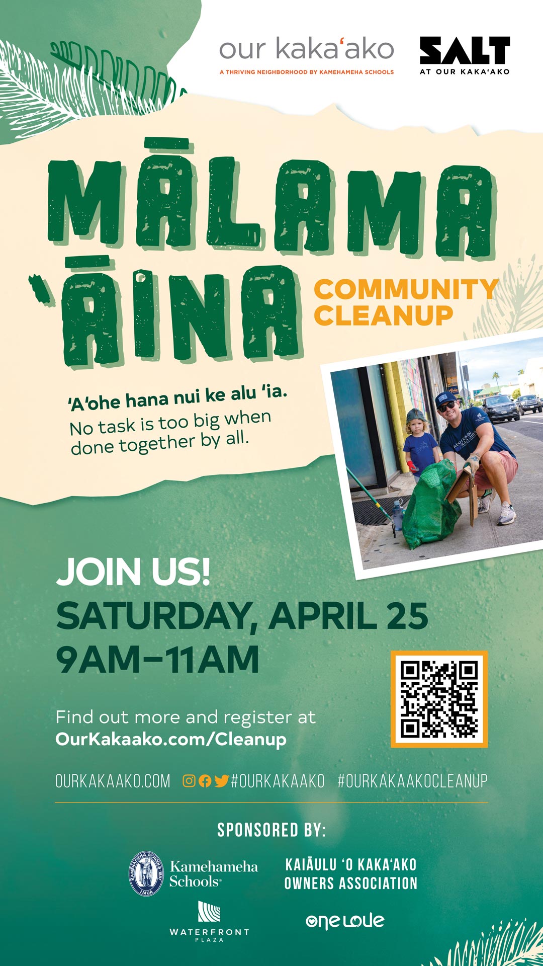 Join us as we care for Our Kakaʻako at our annual Mālama ʻĀina Community Cleanup during Earth Month. The event provides an opportunity to gather, share kuleana to mālama ʻāina, and make a meaningful impact.