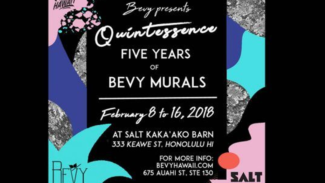 Spectacular murals will be showcased at Salt at Our Kaka‘ako, with Bevy Bar’s “Quintessence,” a week-long art show, starting Feb. 8, the same week of POW! WOW! Hawaii 2018.