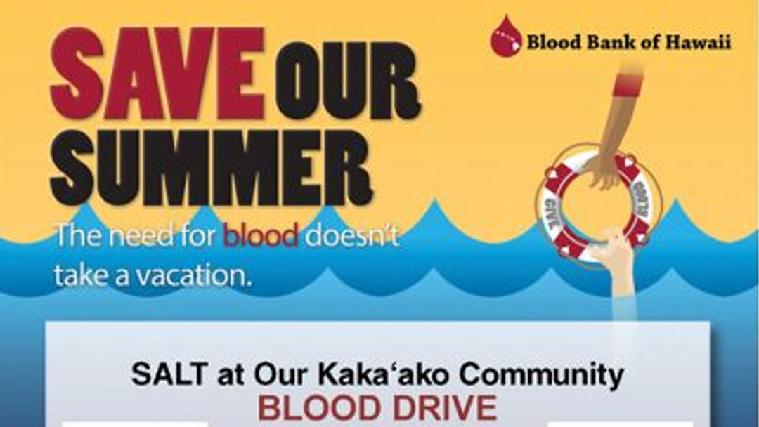 SALT at Our Kaka’ako is again partnering with the Blood Bank of Hawaii to help address the ongoing need for blood in the state. A Community Blood Drive is scheduled on Saturday, August 18, 2018, from 9 a.m. to 1 p.m. The Bloodmobile will be parked on Auahi Street and a tent will be setup at the Building 2 patio. This community event is a wonderful opportunity for the SALT at Our Kaka’ako ʻohana to come together for a good cause. Everyone who donates will receive exclusive coupons to participating SALT merchants and will also be entered for a chance to win a $100 weekly Foodland giveaway and the grand prize of a neighbor island trip. To make an appointment to donate blood, please make an ONLINE APPOINTMENT HERE
